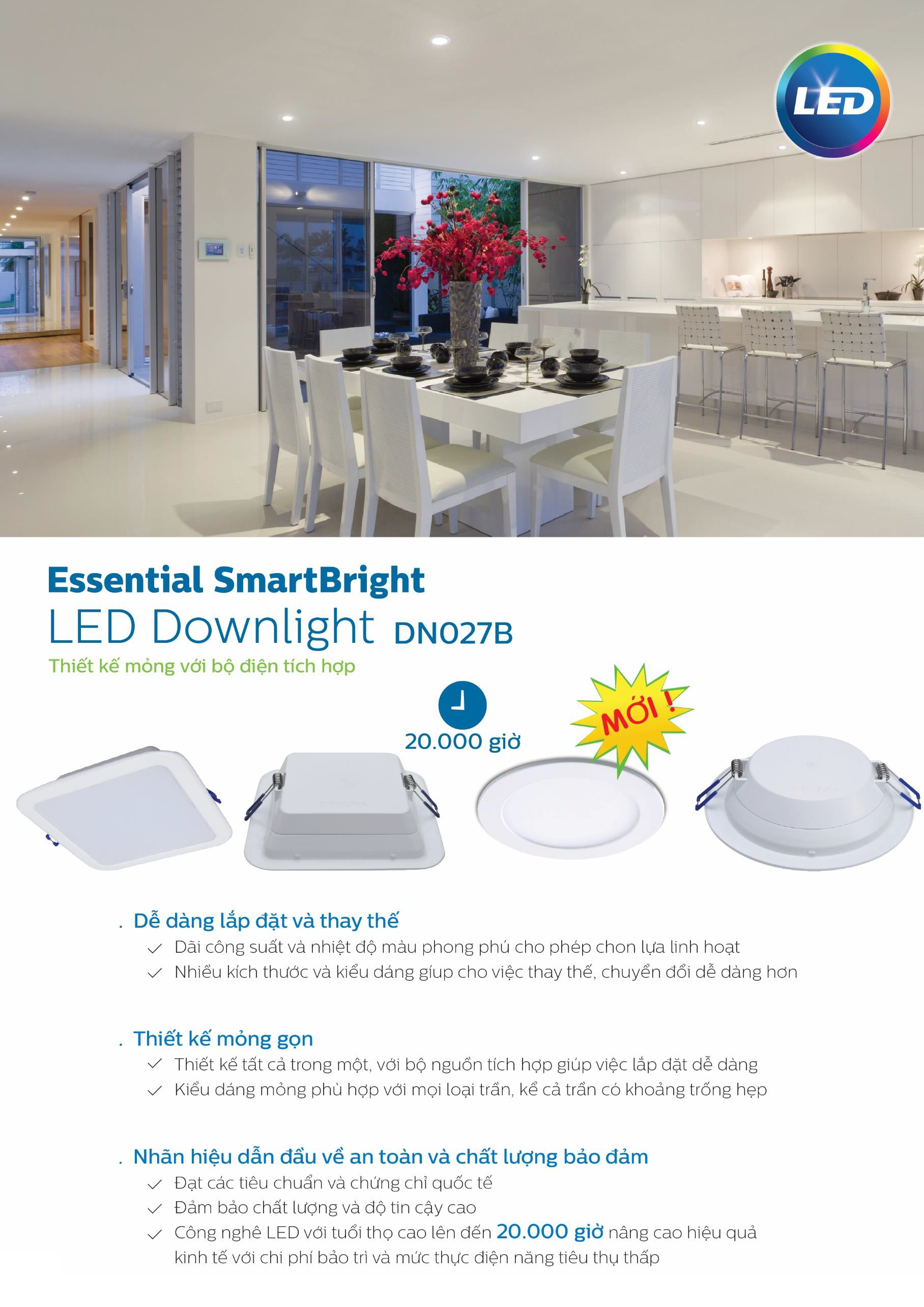 Hiệu suất cao hơn, tiết liệm hơn! Đèn downlight âm trần Led Philips SmartBright DN027B LED15CW D175 18W với quang thông lên đến 1500Lm thay thế các bộ đèn downlight CFL-ni / CFL-i 2x18W giảm 50% chi phí tiền điện, tạo ra hiệu ứng ánh sáng tự nhiên trong các ứng dụng chiếu sáng chung ở các trung tâm thương mại, văn phòng, nhà ở có không gian rộng. Đèn downlight âm trần LED Philips SmartBright DN027B LED15/CW D175 18W an toàn cho sức khỏe, không bị nhấp nháy, không chứa các chất độc hại và có chỉ số hoàn màu cao >80Ra, đảm bảo rằng bạn có thể nhìn thấy các đối tượng với màu sắc chân thật, tự nhiên. Philips là nhãn hiệu dẫn đầu về an toàn và chất lượng CE, EN60598, RoSH.