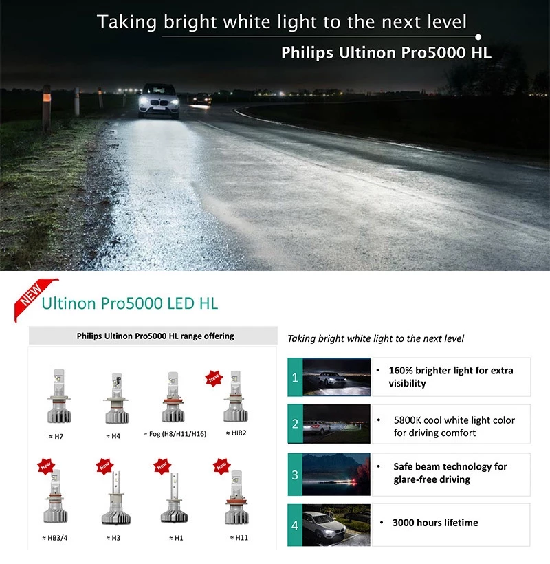 Philips Ultinon Pro5000 tương thích với các hệ thống điện 12V và 24V nên phù hợp với hầu hết các mẫu xe.